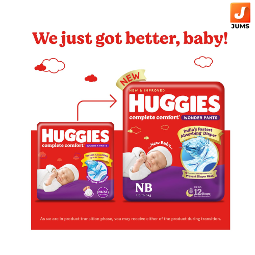 New & Improved Huggies Complete Comfort Wonder Pants - India's Fastest Absorbing diaper, Clinically Proven to Prevent Diaper Rash; Newborn size baby diaper pants