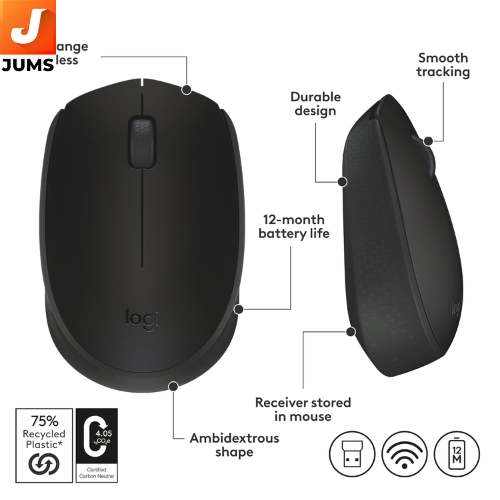 Brand Logitech Colour Black Connectivity Technology Wireless Special Feature Wireless Movement Detection Technology Optical