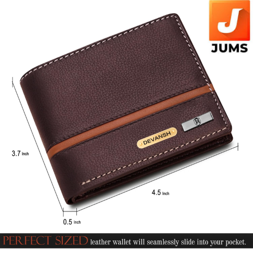 CUSTOMISED NAME WALLET : If you're tired of the same old, boring wallets, try out this personalized name wallet! Not only can you customize the name, but these wallets are incredibly stylish compared to regular wallets.FUNCTIONAL DESIGN: This stylish mens wallet offers plenty of space to store your valuables. It features 2 cash compartments, 8 credit card slots, 1 ID slot and 1 secret pocket, all within a slim wallet size of 4.5 X 3.5 X 0.75 inches.