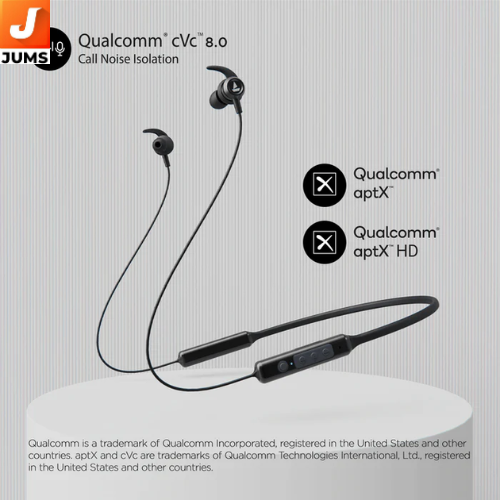 Rockerz 355 is a premium wireless Bluetooth neckband earphone built for immersive audio and all-day comfort. It features powerful 12 mm graphene drivers and Qualcomm® aptX™ & aptX™ HD audio technology for rich, detailed sound performance, along with Qualcomm® cVc™ noise-isolated calls for clearer voice quality.