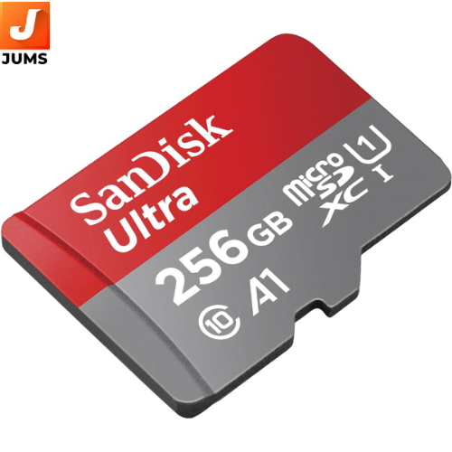 Brand SanDisk Model Name SanDisk Ultra® microSD™ card Flash Memory Type Micro SD Memory Storage Capacity 256 GB Compatible Devices Chromebooks, Smartphone, Tablet Colour Red Special Feature Drop Proof Read Speed 150 Megabytes Per Second Item Weight 5 Grams Warranty Type Limited