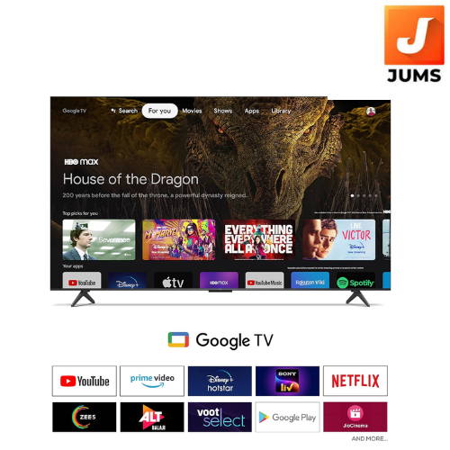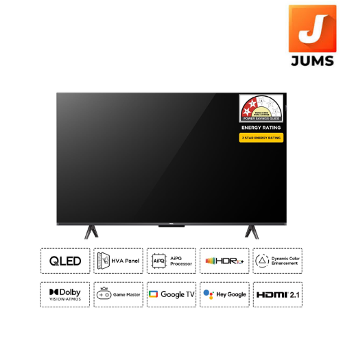 Smart TV Features: 4K QLED Google TV |2GB RAM | 16GB ROM | 64-bit Quad Core Processor| WIFI 5 | Game Master | Google Assistant |Prime Video, Netflix, Hotstar, Zee5 and more| Web Browser | Screen Mirroring | Works with Alexa | Multiple Eye Care | Eneygy Rating: 2 Star | Annual Energy Consumption: 135 kWh/ Year